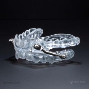 IST®-classic: Die Verbindung des Ober- und Unterkiefers erfolgt beim IST-classic durch zwei lateral liegende justierbare Führungsstege, so dass der Unterkiefer protrudiert. Diese Variante ist besonders geeignet, wenn nur eine geringe Sperrung möglich ist (elongierte Zähne oder stark ausgeprägte Speesche Kurve).